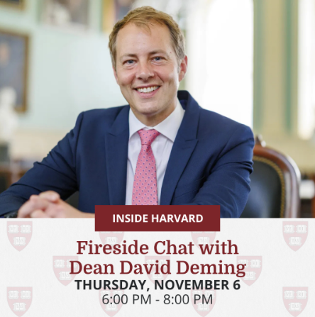 It is with excitement and profound gratitude that the Harvard Club of Boston invites you to a special fireside chat with David Deming, the newly appointed Danoff Dean of Harvard College, in conversation with HCB Vice President, Andy Freed '90 KS'94. This -
